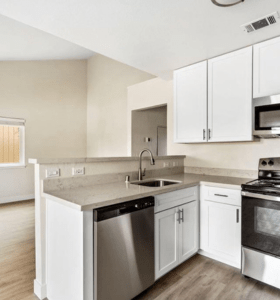 | Built-in Laundry No more trips to the laundromat. Every unit comes equipped with built-in laundry closet, with hook-ups. | Vaulted Ceilings & Natural Light Open floorpans with elevated ceilings create a spacious, inviting atmosphere. |
